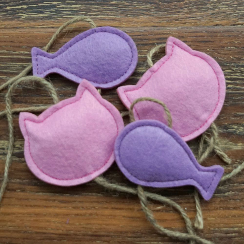 Sortiert im Set: 2 x Fisch + 2 x Katzenkopf + 1 x Klettband